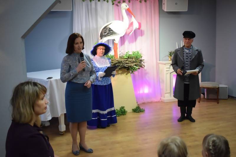 В этот раз местом проведения торжества стал культурный центр «Поморская АРТель», работники которого создали по-настоящему чудесное настроение малышам и их родителям. Характерным олицетворением праздника стала символическая декорация в виде фигуры аиста с новорожденным младенцем, разместившаяся в зале у всех на виду.