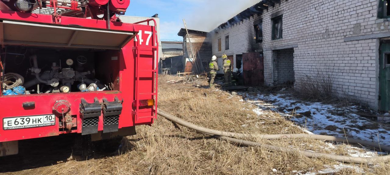 Сегодня пожарным пришлось спасать двухэтажный гараж в поселке Мелиоративный Прионежского района.