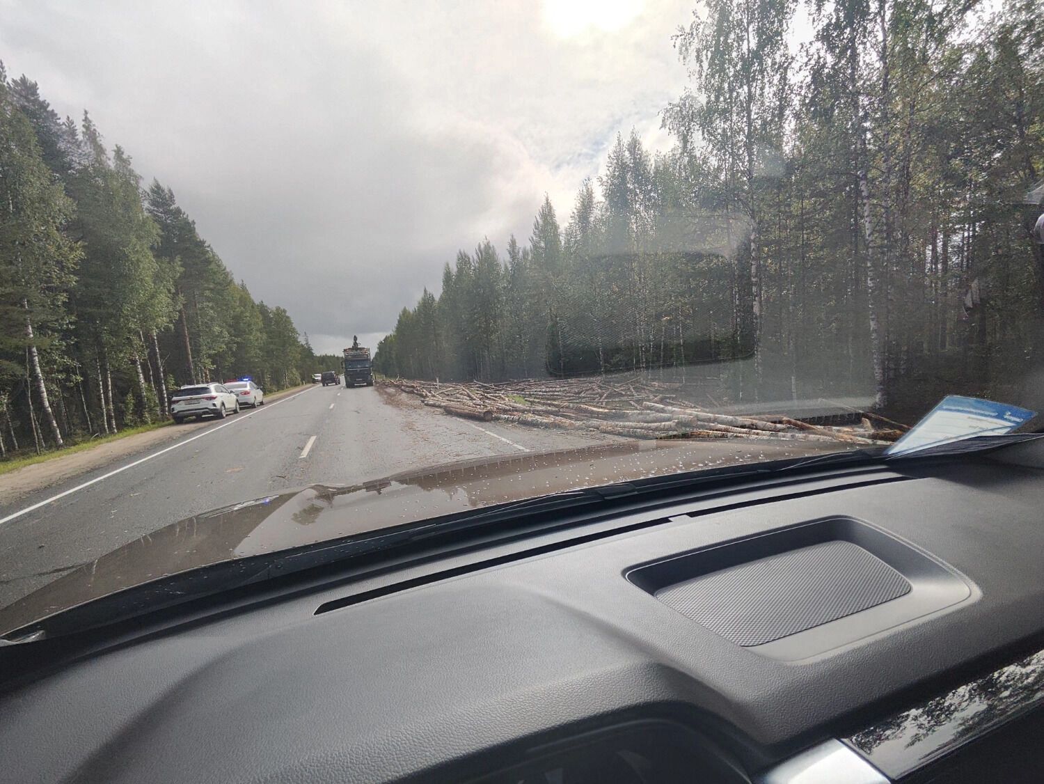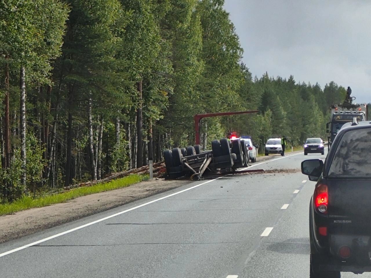 Сегодня лесовоз перевернулся на трассе «Кола» в Сегежском районе. Авария произошла в 15 км от Сегежи в сторону Петрозаводска.