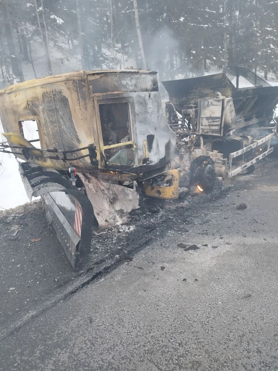 В Карелии сгорела снегоуборочная техника