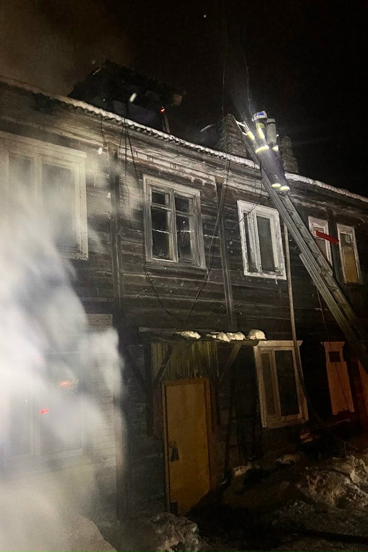 Вчера поздно вечером в поселке Хелюля (Сортавальский район) загорелся двухэтажный деревянный дом на улице Вокзальная, 3.