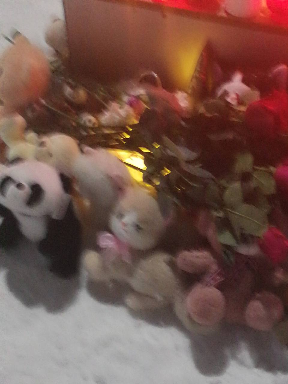 Сегодня вечером на площади в Костомукше жители зажигали свечи памяти. Люди несли игрушки, цветы, обнимали родителей, плакали.