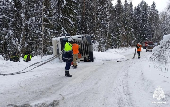 На трассе в Карелии опрокинулся бензовоз.