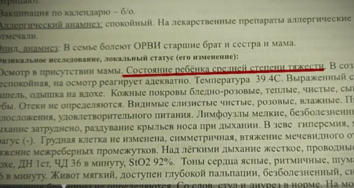 Так, в частности в документа говорится, что ребенок поступил в состоянии средней тяжести, а кислород был дан девочке сразу.