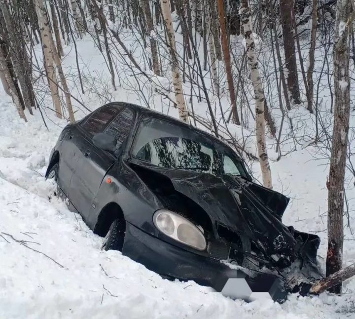 ДТП случилось вблизи деревни Кимасозеро, недалеко от Костомукши. Автомобиль вылетел в кювет и врезался в дерево.