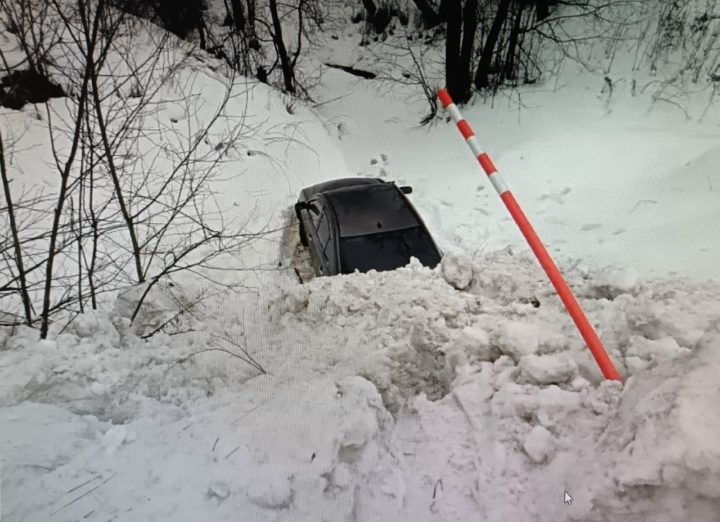 Вчера утром жесткая авария случилась в Олонецком районе. Автомобиль  вылетела с дороги и рухнул в снежный овраг.
