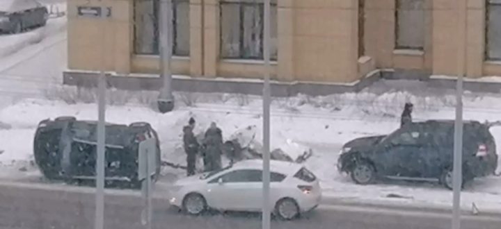 Автомобиль перевернулся в Петрозаводске, наехав на сугроб