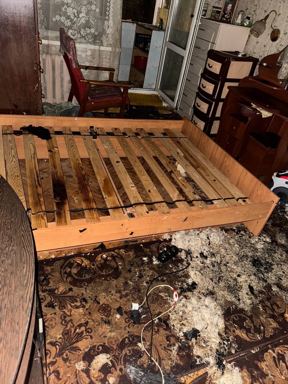 Как выяснилось, пожар случился из-за электрической грелки, которой грел постель мужчина: от нее загорелся матрац.