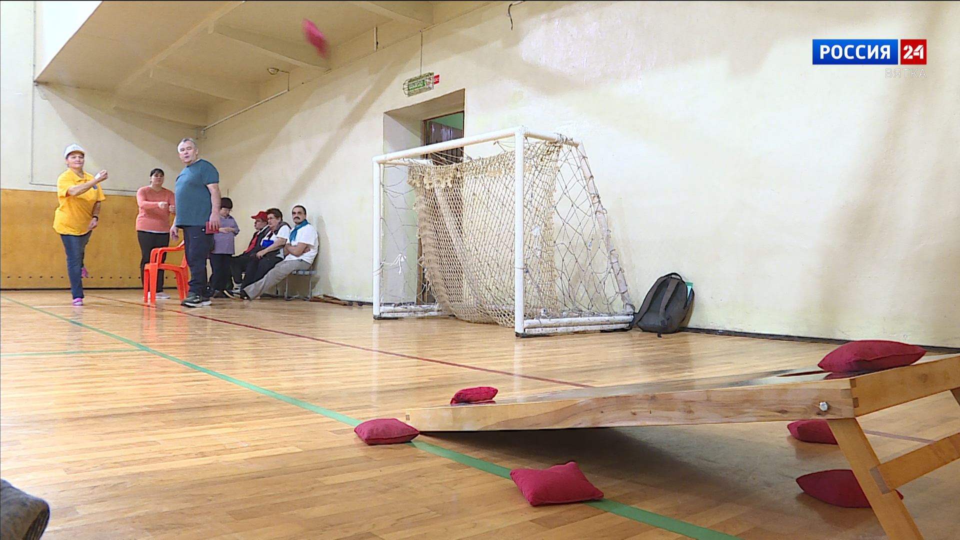 Бросали тканевые мешки с крупой в наклонённую доску с отверстием на дальнем конце. Если участник попадал в отверстие, ему присуждалось три очка, если просто - на доску - одно очко.