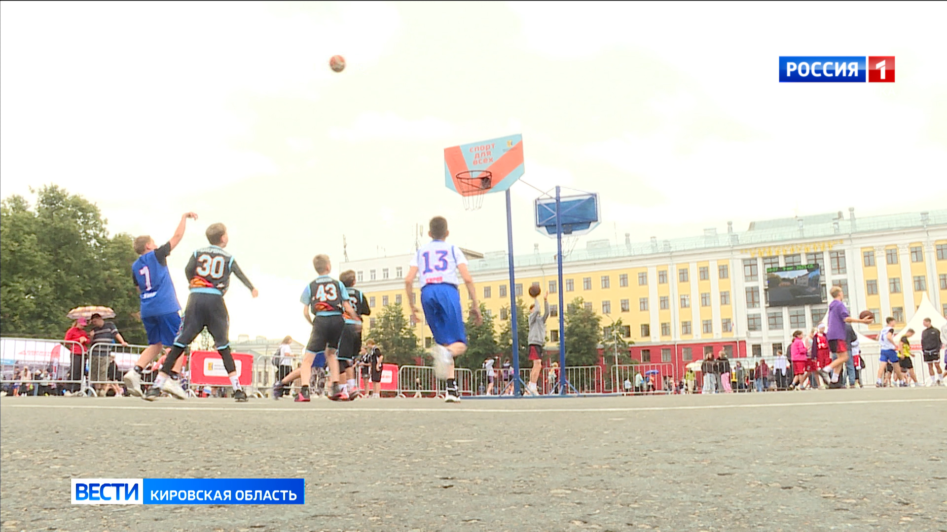 Театральная площадь сегодня словно спортивная арена. Более 70 команд принимают участие в турнире «Оранжевый мяч». Среди всех разновидностей баскетбола версия 3х3 по популярности уже серьезно конкурирует с классической под щитом. Здесь быстрые и динамичные игры. Турнир открыли молодые спортсмены.