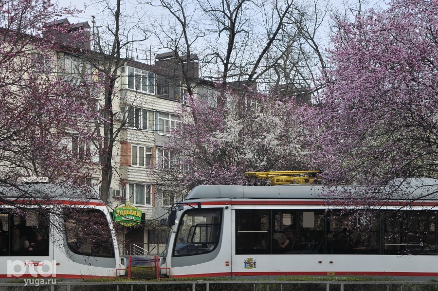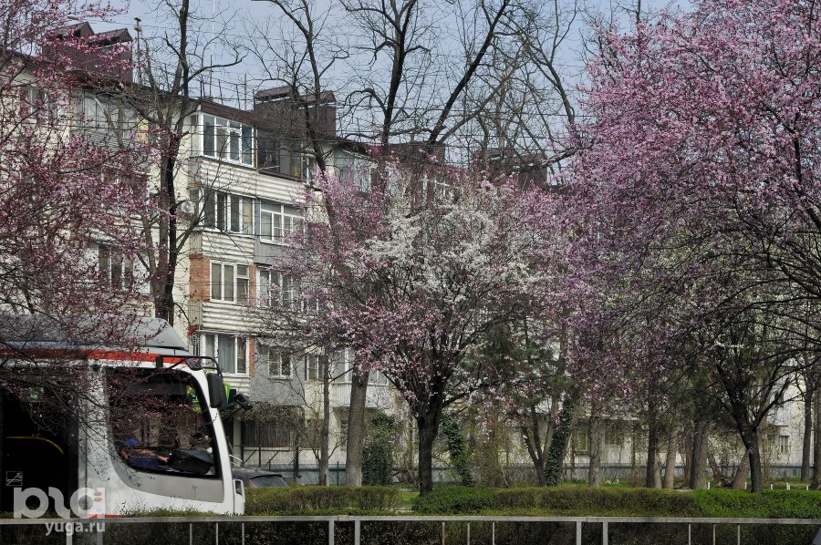 Сливы «писсарди» вдоль трамвайных путей на улице Ставропольской традиционно открыли сезон ханами в Краснодаре