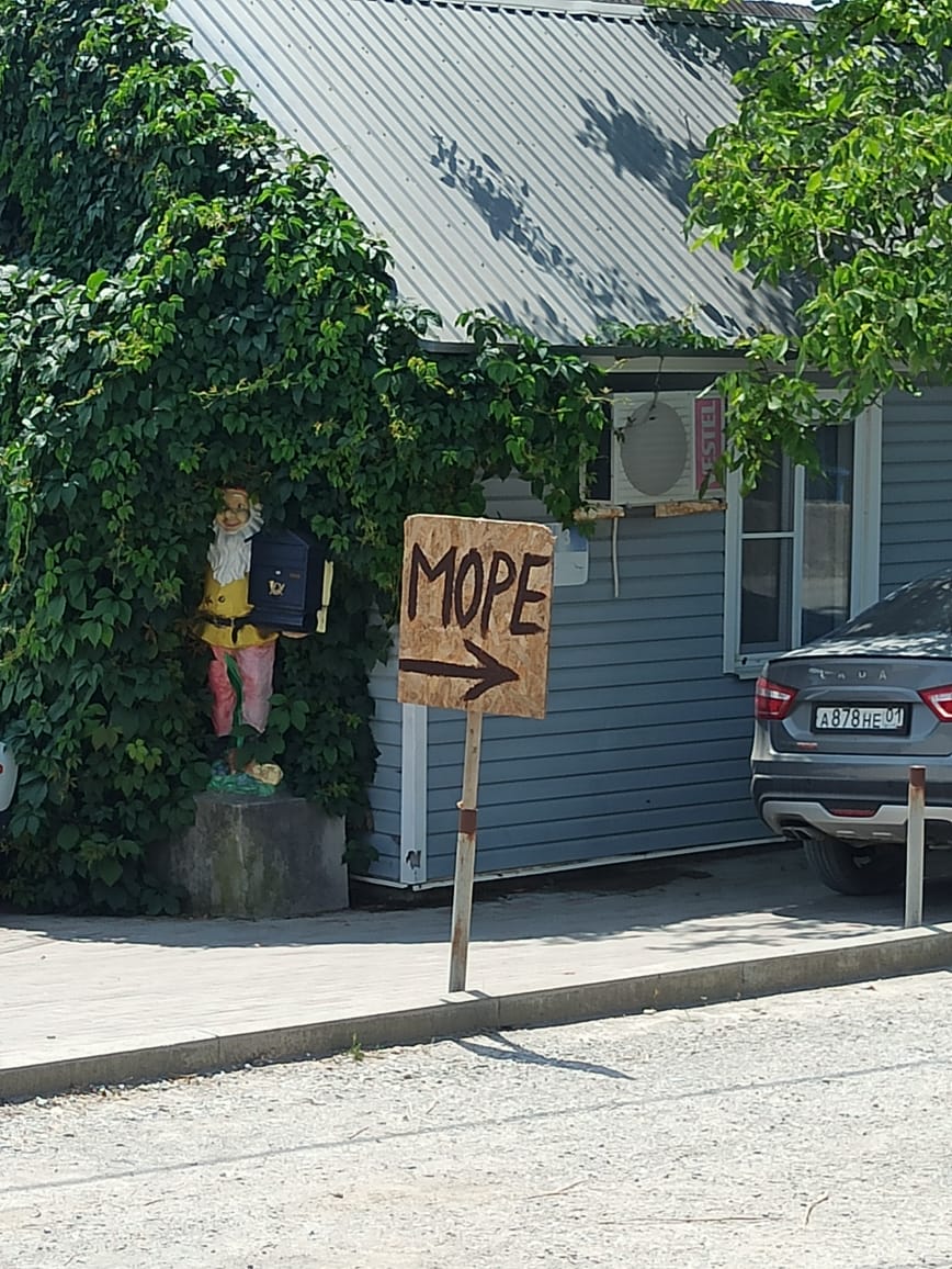 В Большой Кринице есть Центральный и дикие пляжи, больше «цивилизации», но мы от нее бежим. Поэтому сворачиваем с основной дороги вправо, едем вдоль огороженного и тщательно охраняемого предприятия виноградарской отрасли и замечаем шикарный, сделанный краской от руки, указатель: «Море».