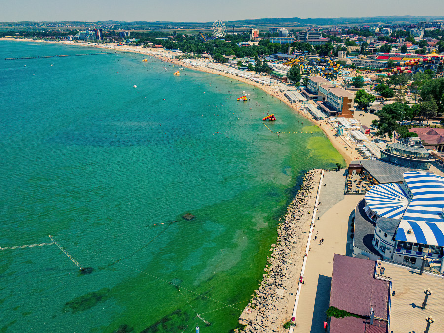 Юга.ру полетали над одним из самых ярких участков Кубанского Черноморья — Анапской бухтой, которая каждое лето расцветает удивительным зеленым оттенком