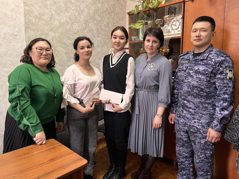 Сотрудники вневедомственной охраны Управления Росгвардии по Республике Тыва оказали материальную помощь для детей подшефной школы № 11 г. Кызыл для их участия во Всероссийском фестивале творческих открытий и инициатив «Леонардо», который пройдет в г. Москва.