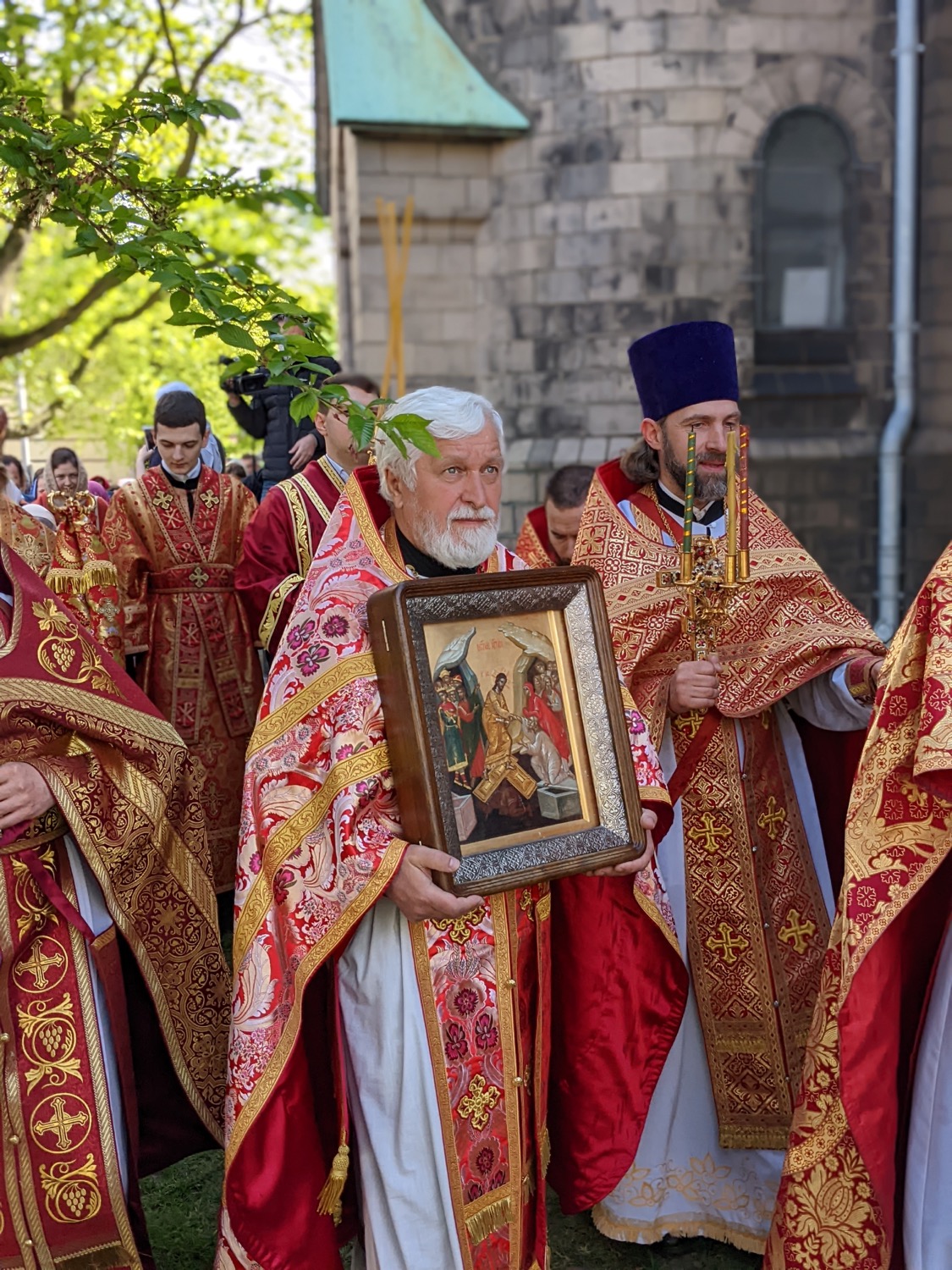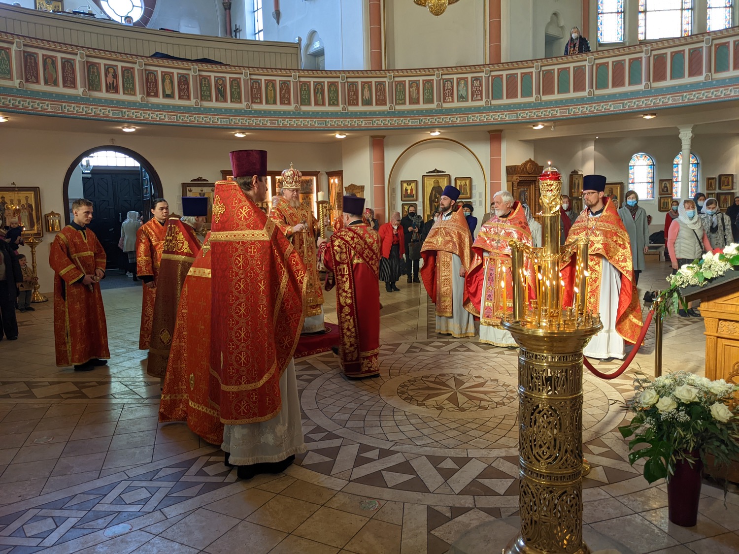 Его Высокопреосвященству сослужили: благочинный Гамбургского округа и настоятель храма протоиерей Сергий Бабурин, протоиерей Дионисий Идавайн (Шверин), иерей Геннадий Сар, иерей Иоанн Сухоняк, протоиерей Валерий Федько, протодиакон Виталий Садаков.