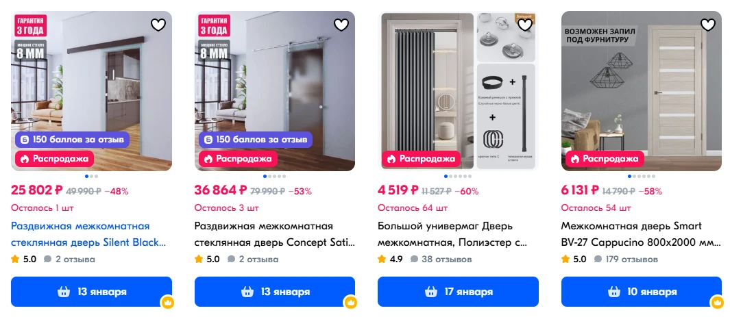 Сегодня ассортимент раздвижных дверей велик, и выбрать подходящий вариант можно в интернет-магазине OZON. Здесь представлены как бюджетные модели, так и дизайнерские решения для требовательных покупателей.
