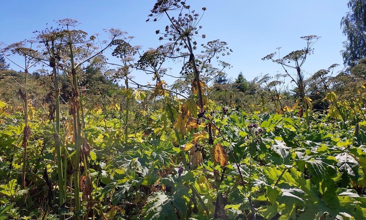 Борщевик Сосновского – опасное растение, которое достигает в высоту 3-5 метров. Сок растения при попадании на кожу под воздействием солнечного света вызывает ожоги, пыльца может спровоцировать удушье, раздражение гортани и рвоту. Борщевик быстро разрастается и разрушает экосистему.