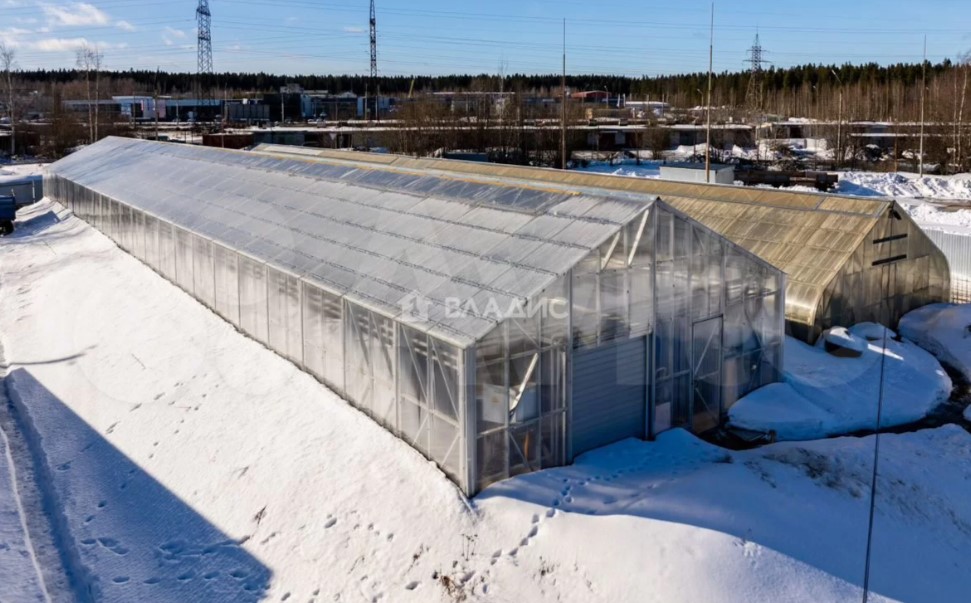 Площадь теплиц с отоплением, освещением и водопроводом 450 и 415 кв. метров. Обе предназначены для выращивания овощей, зелени, цветов, ягод или рассады. Купить их можно за 13 миллионов рублей.