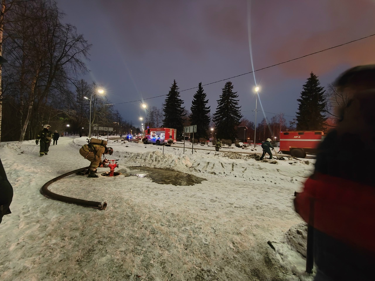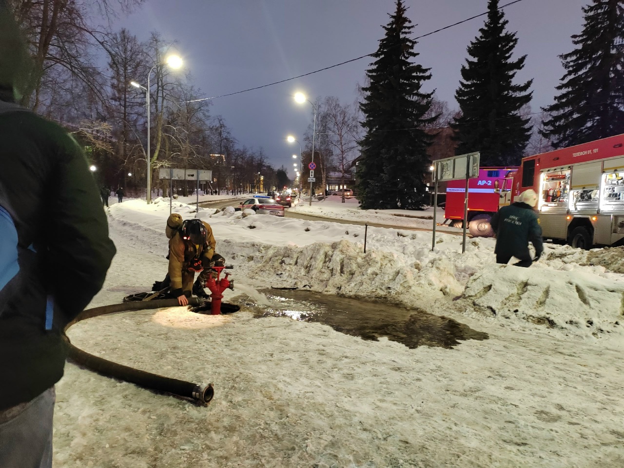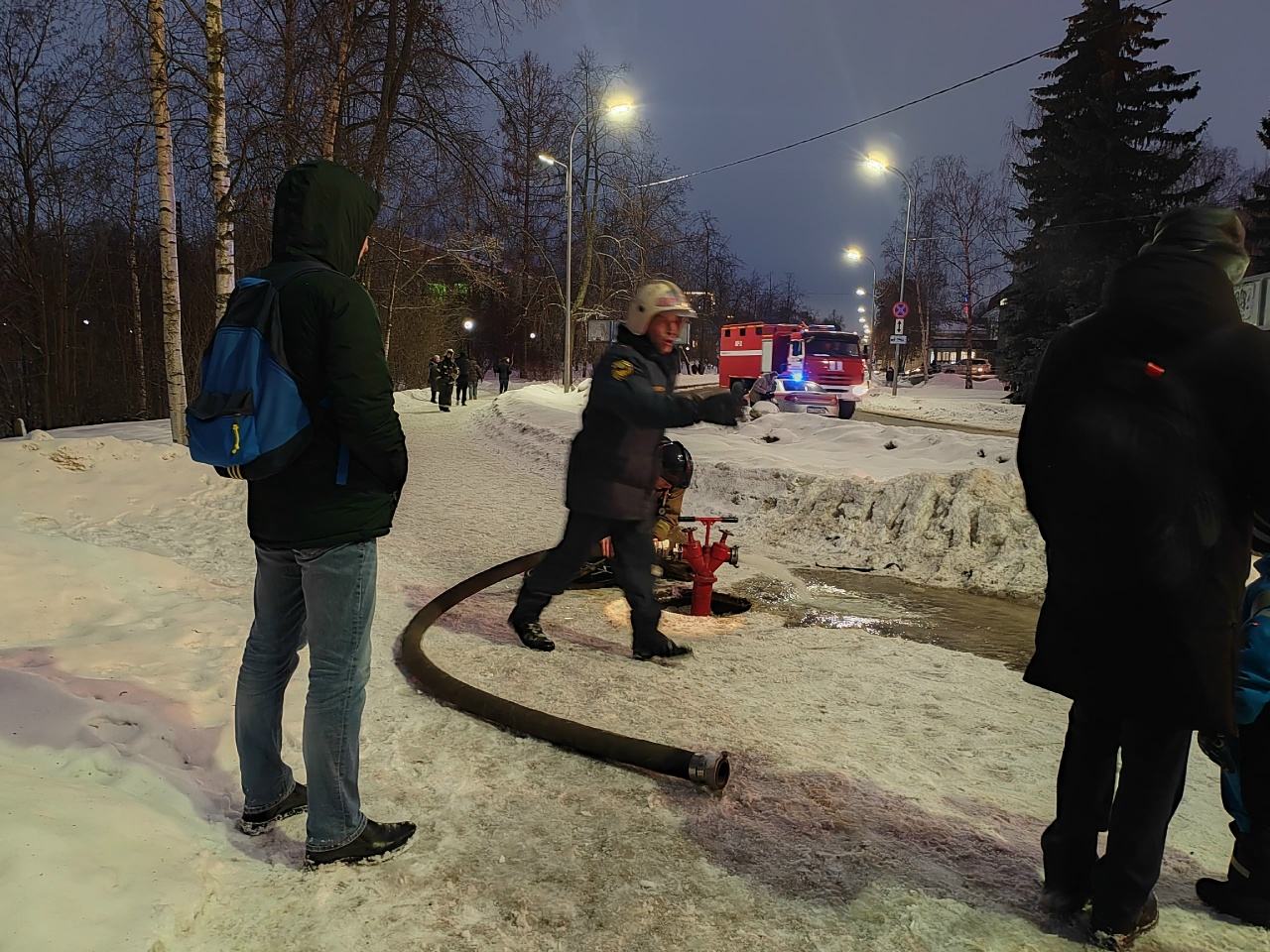 На месте работают пожарные. Спасатели подавали воду через пожарные гидранты. Тушат огонь более 25 спасателей на семи пожарных машинах.