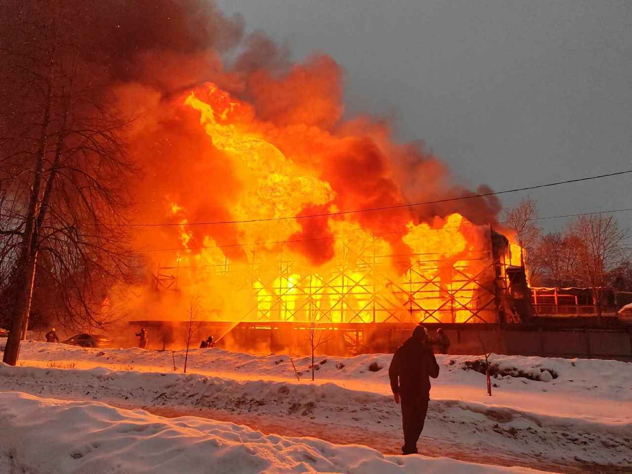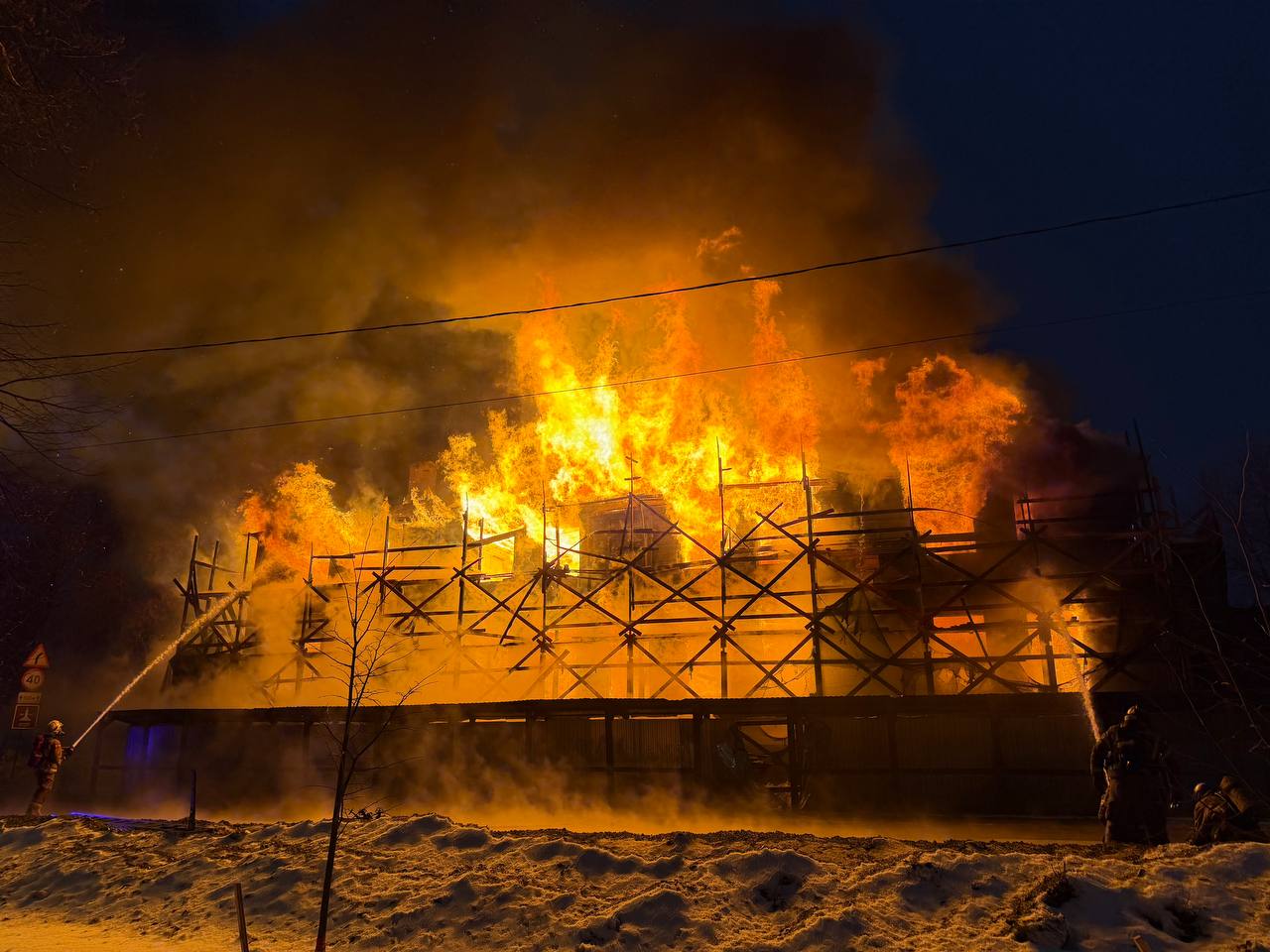 Судя по кадрам, здание уже не спасти, оно сгорит дотла.