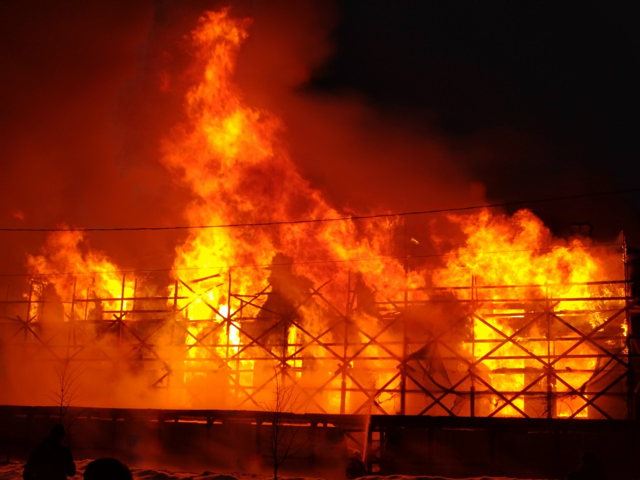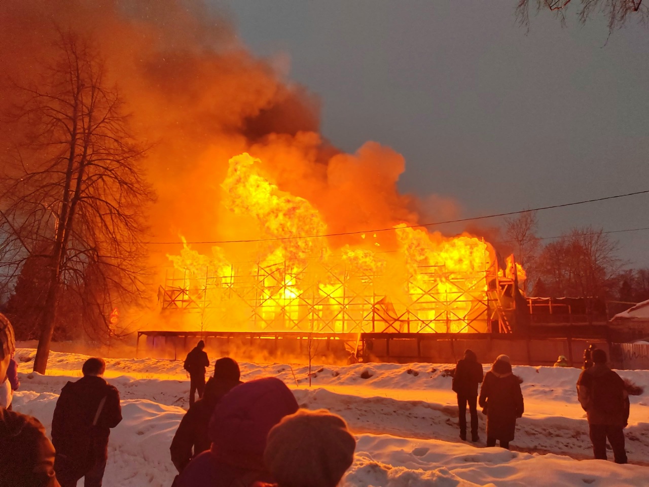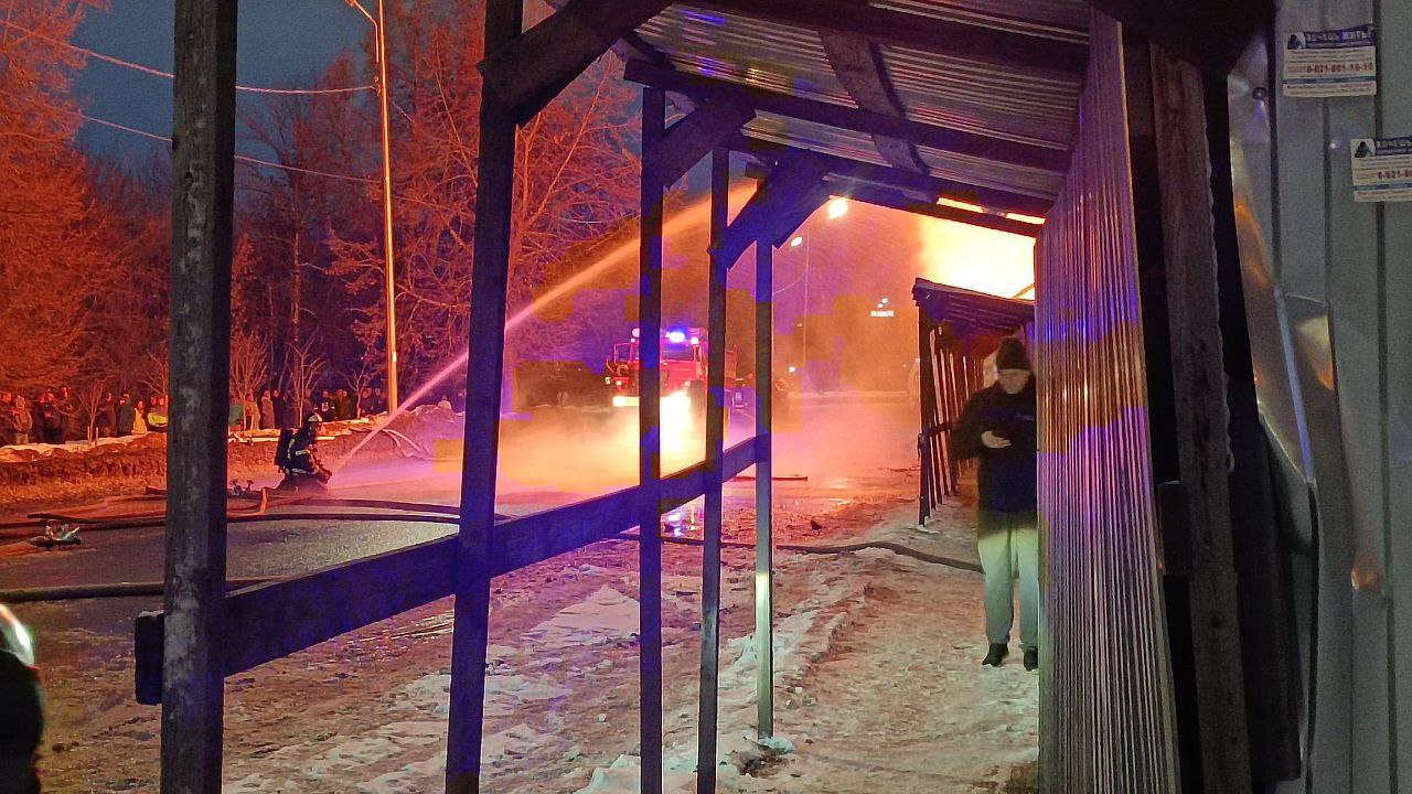 UPD: Как сообщают очевидцы, здание сгорела за считанные минуты. Через полчаса через пожара оно уже начало рушиться. По предварительным данным, пострадавших нет.