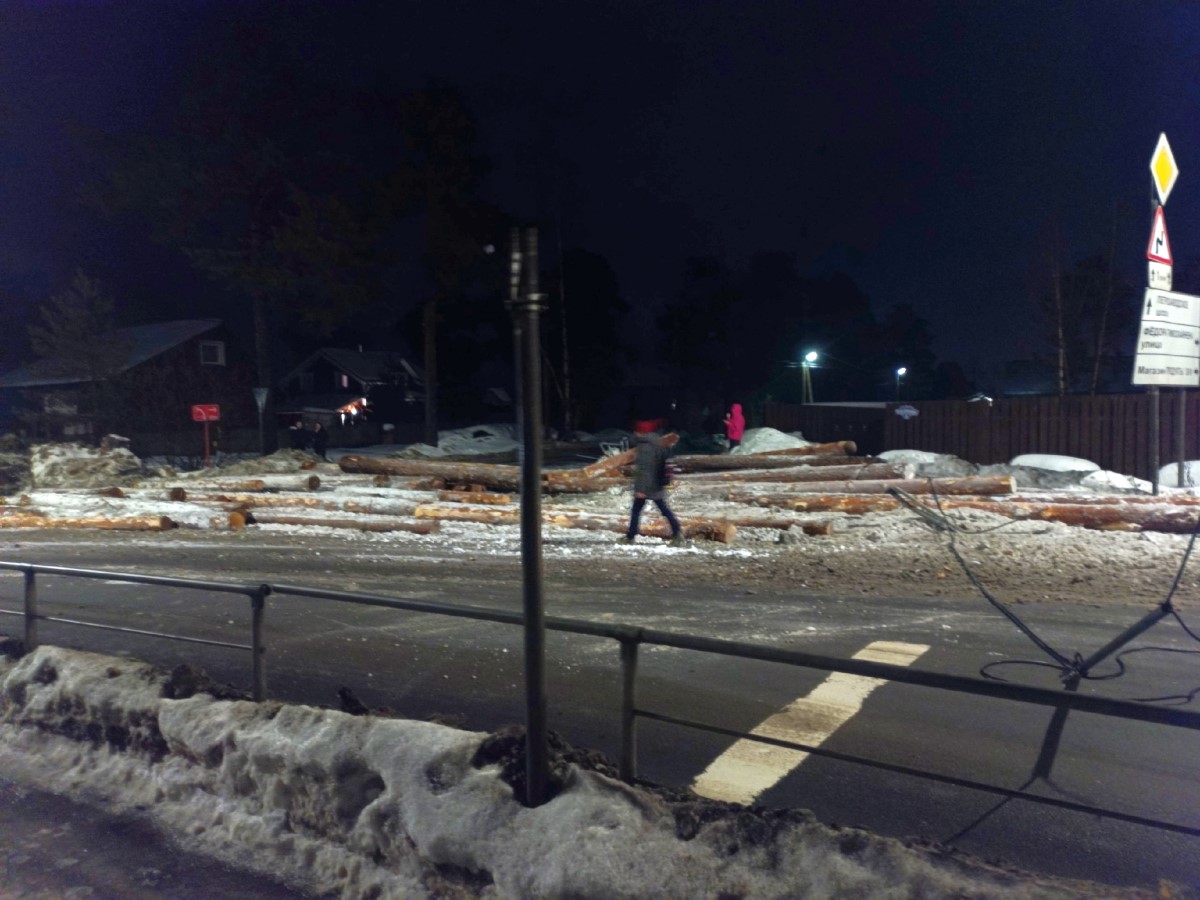 Ранее дорога под Петрозаводском оказалась перекрыта из-за рухнувшего столба.
