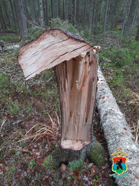 Мужчина выбрал берёзу, попытался её спилить, но дерево зацепилось за стоящую рядом ель и не упало. Тогда пенсионер спилил и ель — оба рухнули на землю. Он начал распиливать берёзу на чурбаки, но быстро стемнело, и он ушёл ни с чем. Больше за дровами пенсионер не вернулся.