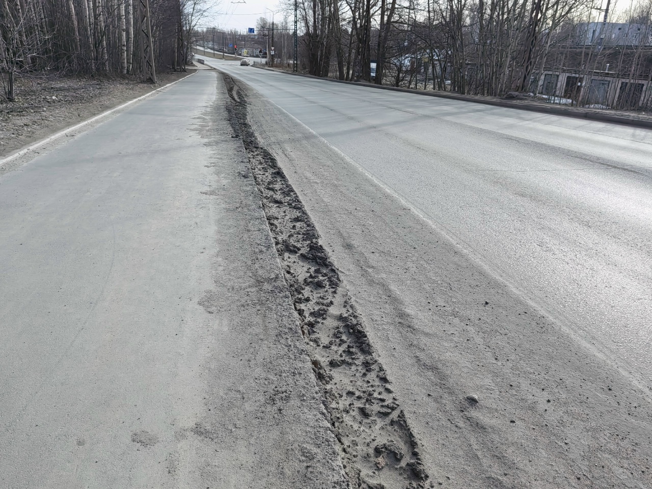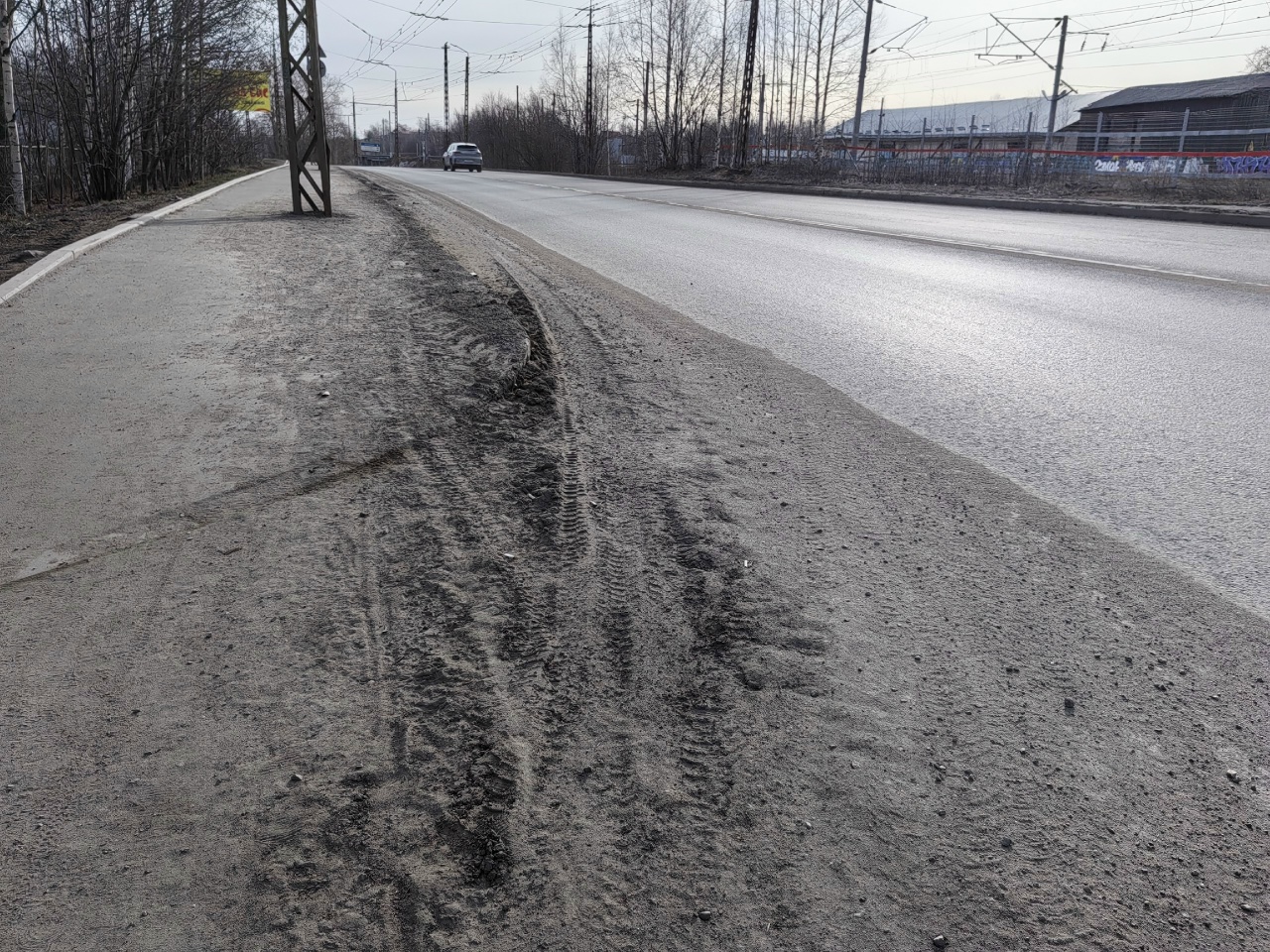 — Улица Калинина, толщина песка свыше пяти см. на дороге, если будет дождь, то вся грязь летит на пешеходов. Неделю ждем уборки тротуаров и дорог, сколько ещё ждать? Город очень грязный, уборочную технику не видно.