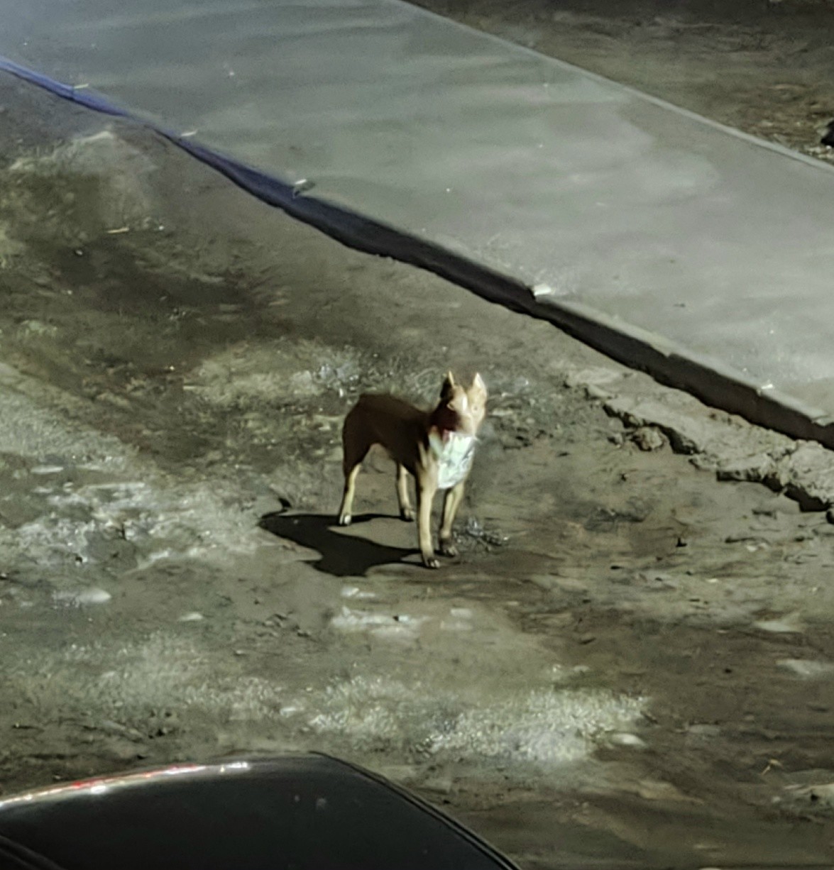 Ранее очевидица рассказала, что видела похожего пса уже с хозяином неподалеку: компания мужчин и одна женщина выпивали прямо у детского садика №70, оставив после себя бардак. Пьяного мужчину, который выгуливает пса, замечают и на улице Коммунистов.