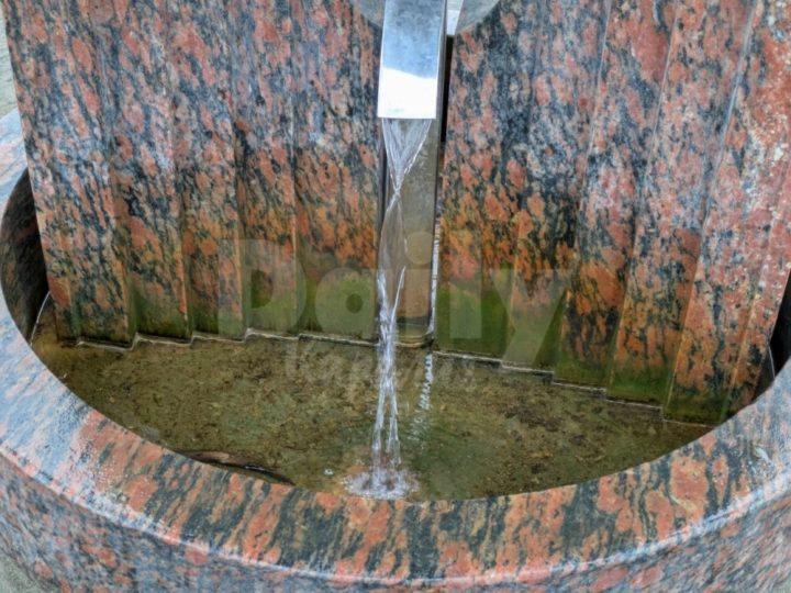 А вода в маленьком фонтанчике окрасила камень в не самый приятный зеленый цвет.