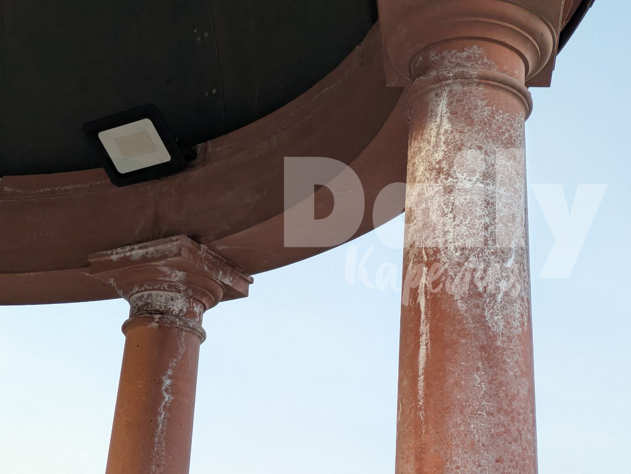 Стала ли ротонда прочнее, вопрос открытый — на колоннах снова стали заметны трещины. Белые разводы все так же мозолят глаза, хоть сейчас они и менее заметны.