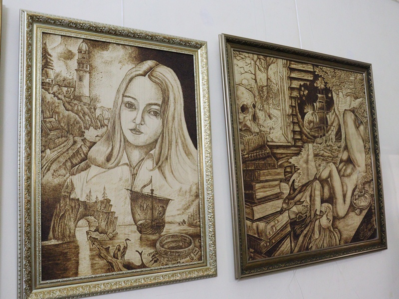 Выставку стоит посетить потому, что масштабные и самобытные работы Александра Корнилова, представленные в технике пирографии, уникальны в своем роде. В городе Шахты, да и в Ростовской области таких мастеров нет.
