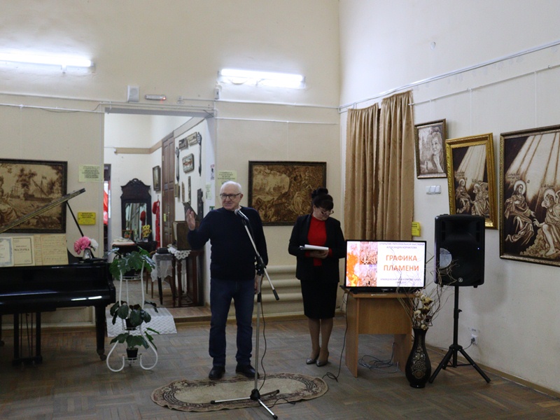 В Шахтинском краеведческий музее 27 января на улице Шевченко, 149 состоялось торжественное открытие третей по счету, действующей в городе Шахты, выставки Александра Корнилова «Графика пламени».