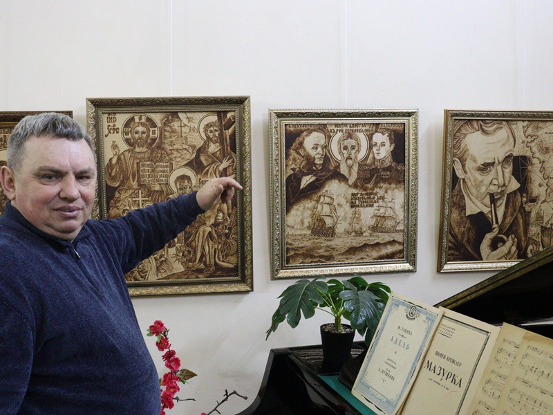 В краеведческом музее города Шахты состоялось открытие выставки пирографа Александра Корнилова «Графика пламени»