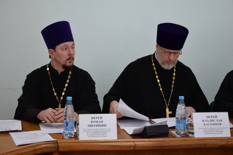 В совещании приняли участие епископ Шахтинский и Миллеровский Симон, заместитель председателя Законодательного Собрания Ростовской области – председатель комитета по аграрной политике, природопользованию, земельным отношениям и делам казачества Вячеслав Василенко, депутат Законодательного Собрания Ростовской области Ирина Жукова, председатель городской думы г. Шахты Максим Голодов, заместитель главы администрации Шолоховского района по социальным вопросам Сергей Благородов, секретарь Шахтинской епархии иерей Александр Теличкин, руководитель отдела религиозного образования Шахтинской епархии протоиерей Сергий Яценко, руководитель молодёжного отдела протоиерей Александр Маликов, руководитель отдела по церковной благотворительности и социальному служению иерей Владислав Касьянов, благочинный приходов Верхнедонского округа иерей Роман Митяшин, древлехранитель Шахтинской епархии, старший преподаватель ИСОиП (филиала) ДГТУ в г. Шахты, заместитель председателя Ростовского отделения Императорского Православного Палестинского Общества Илья Шарков.
