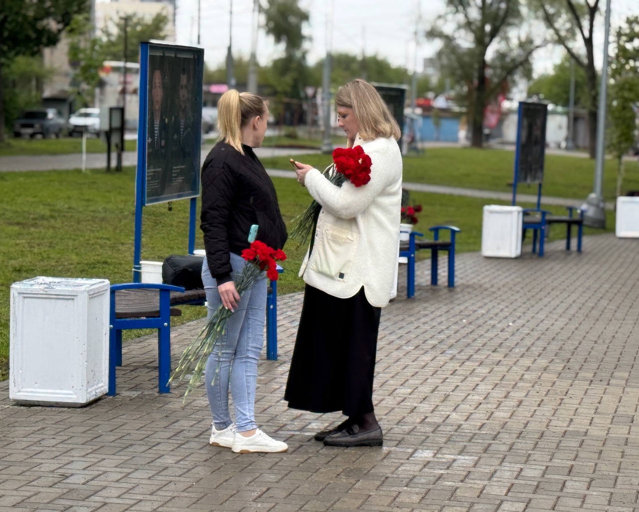 Память погибших почтили минутой молчания. К портретам героев возложили цветы.