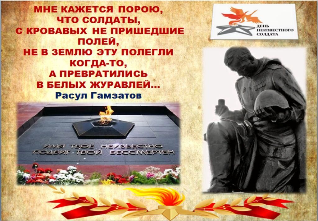 День Неизвестного Солдата – это дань памяти погибших в годы Великой Отечественной войны и дата, которая объединяет всех погибших и пропавших без вести во время войн и военных конфликтов. Крымский поэт Владимир Вартаньян с огромной верой и надеждой пишет: