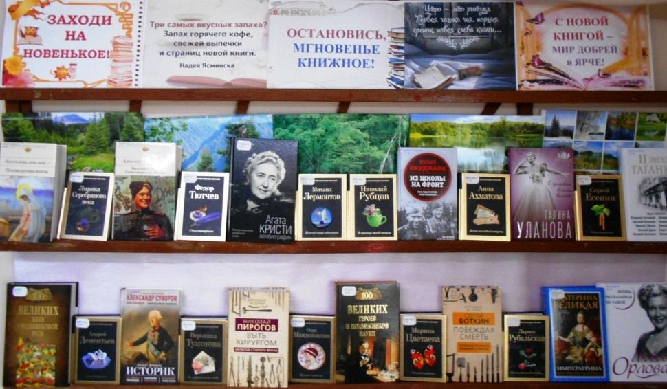 У каждого книгочея есть свои литературные вкусы, интересы, темы. Известные и начинающие авторы, разнообразные жанры поступившей в библиотеку литературы, приобретенной на бюджетные средства, порадуют читателей, предпочитающих как серьезное, так и легкое чтение. Александра Маринина и Мария Метлицкая, Татьяна Устинова и Евгения Островская, Наталья Александрова и Марина Степнова, Татьяна Степанова и Маша Трауб… Каждому найдётся что-то по душе.