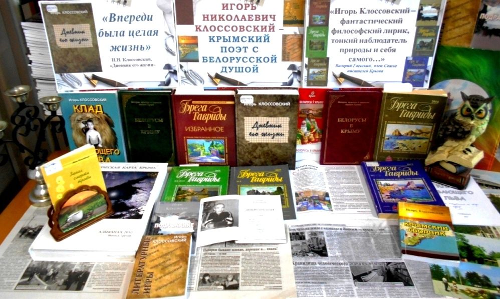 Информационным сопровождением мероприятия стала книжная выставка «Я, как волшебник, созерцаю чудо…», представившая гостям рассказывающие о жизни и творчестве И.Н. Клоссовского издания «Белорусы в Крыму» и «Брега Тавриды», авторские издания Игоря Николаевича «Дневник его жизни», «Крымский сборник», «Подражание», «Литературные игры», «Запах смерти травы», большинство из которых – с автографом автора.
