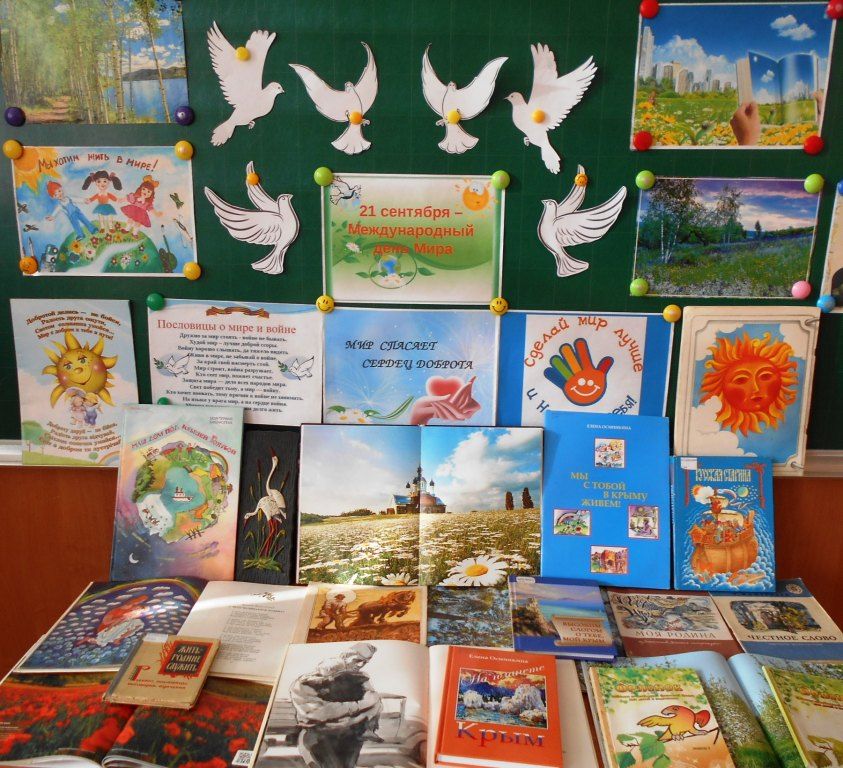 21 сентября во всех странах отмечается Международный День Мира, учреждённый Генеральной Ассамблеей ООН в 1981 году. В преддверии этого дня, в рамках проекта «Чтение – вот лучшее учение!», сотрудники симферопольской библиотеки-филиала №4 им. М. М. Коцюбинского, совместно с преподавателем Ириной Томиловой, организовали для гимназистов столичной гимназии №9 час доброго общения «Мир на планете – счастливы дети».