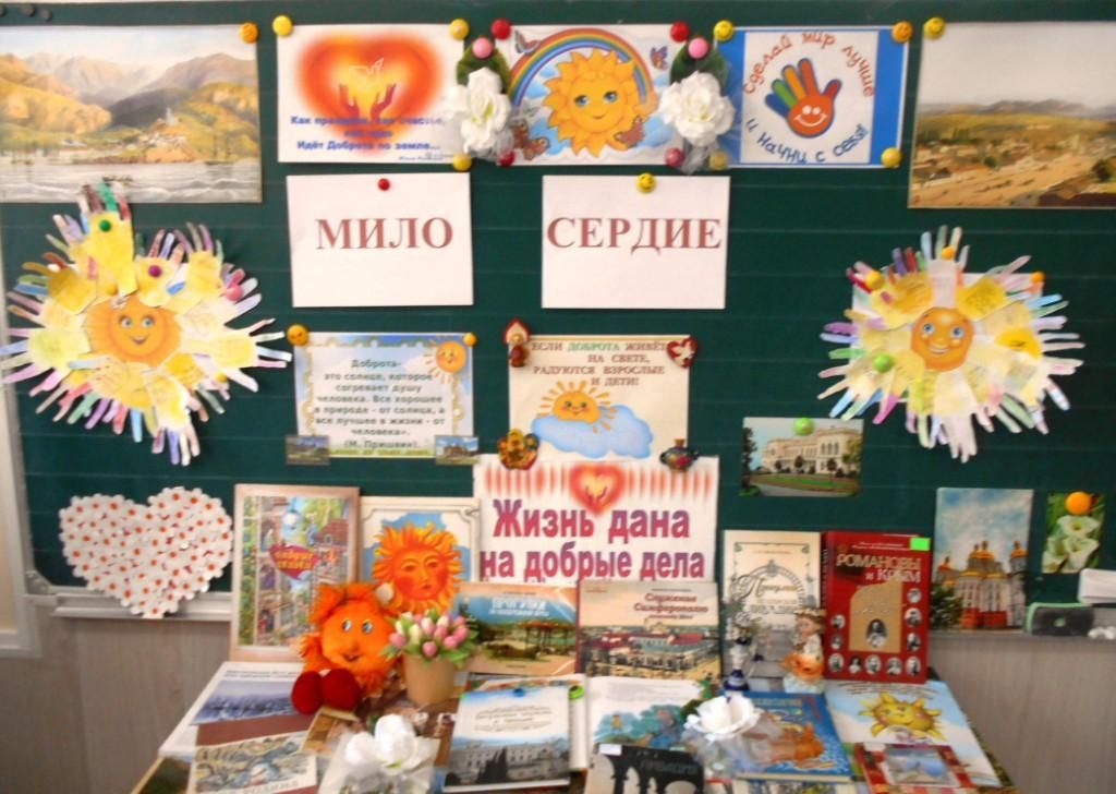 Информационным сопровождением мероприятия стала выставка «Если доброта живет на свете, радуются взрослые и дети»», ключевое место на которой заняли «Прогулки по царской Ливадии» Л. Прокоповой, «Ливадия – цветочная корона Дома Романовых» Ю. Арбатской и К. Вихляева, «Русская Ривьера» А. Мальгина, «Основы православной культуры Крыма», статьи из крымских журналов «Полуостров сокровищ», «Крымский журнал», «Деловой Крым» и др., а также «добрые» произведения крымской и отечественной литературы. Музыкальным дополнением часа добра стали видеоклипы «Песня о доброте» и «Твори добро».