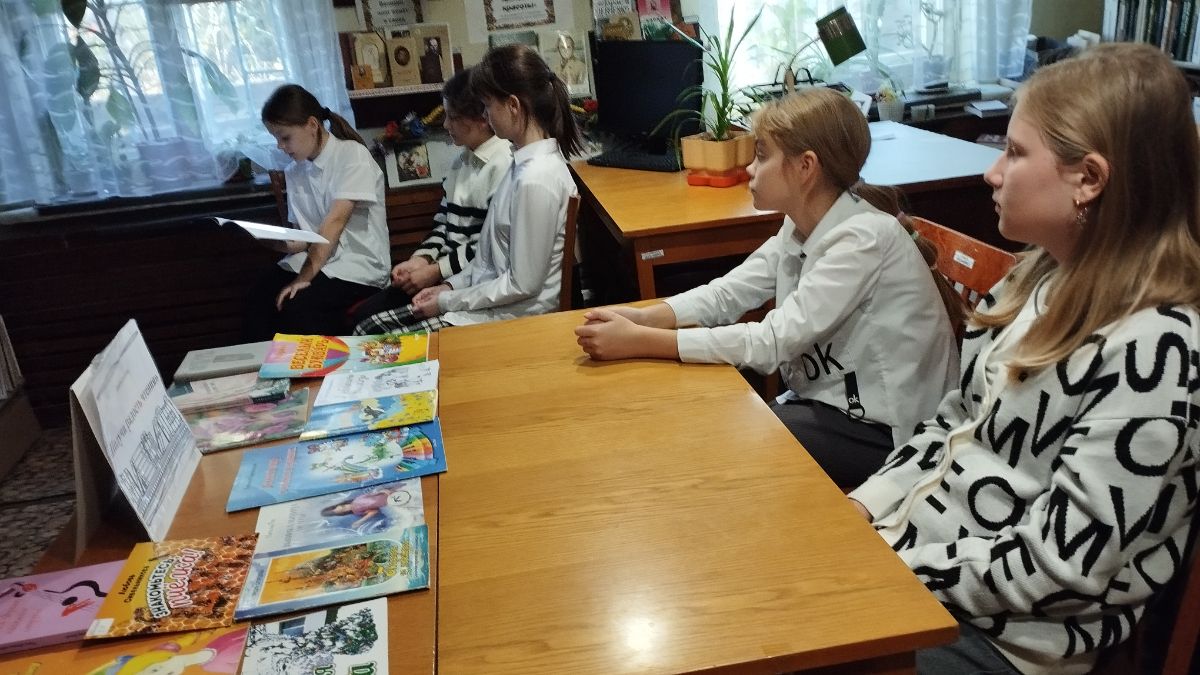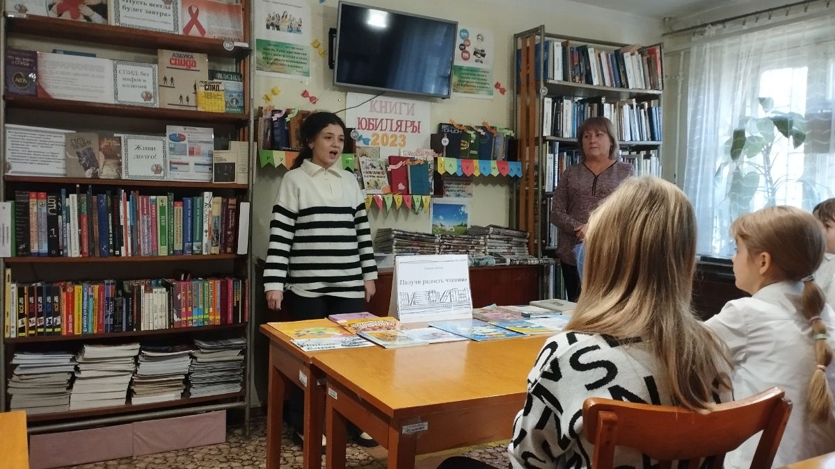 Сотрудники библиотеки рассказали школьникам МБОУ «СОШ №18 им. И. И. Богатыря» о Годе педагога и наставника, показали видеоматериалы на данную тему и познакомили их с детскими крымскими авторами. Участникам марафона предлагалось прочитать вслух отрывки из произведений детских писателей – Юрия Полякова, Елены Осминкиной, Лидии Огурцовой, Ольги Голубевой. Натальи Гук, Владимира Орлова, Любови Сивельниковой и других.