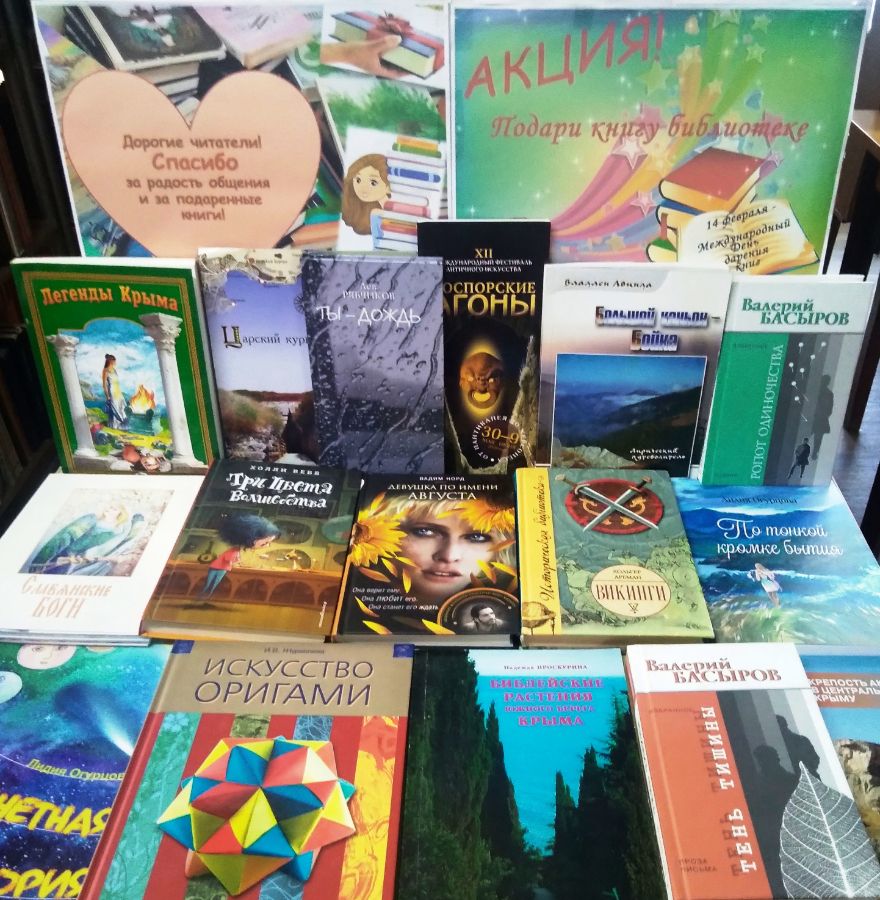 Читатели и жители микрорайона обслуживания симферопольской библиотеки-филиала №4 им. М.М. Коцюбинского традиционно включились в ежегодную общероссийскую акцию, главная цель которой – вдохновлять людей дарить друг другу хорошие книги и напомнить, что бумажная книга не теряет своей ценности и по-прежнему остается актуальным подарком. Участников акции, которые с радостью делились близкими их сердцам изданиями, чтобы те нашли новых читателей, объединяет одно – любовь к книге и чтению. Тематика и жанры подаренных книг различны: «женские» романы, детективы, фантастика, кулинарные издания, произведения отечественных и зарубежных классиков.