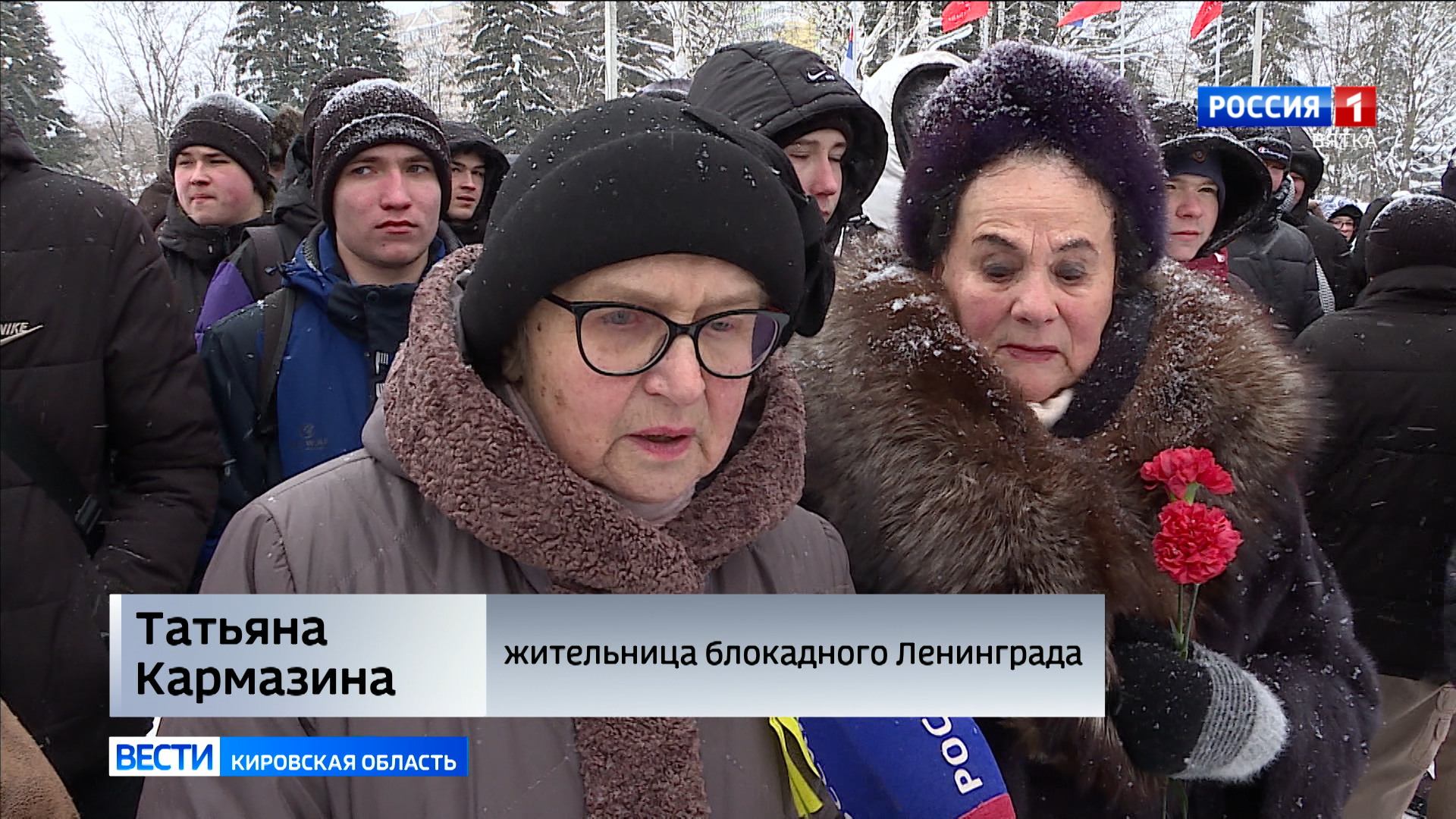 В торжественном строю, школьники, студенты, работники силовых структур и, конечно, ветераны. Татьяна Ивановна Кармазина часто рассказывает, как жили во время блокады и как умирали на улицах города люди. В начале войны, ей было всего два года, но воспоминания о тех, страшных событиях надолго остались в памяти.