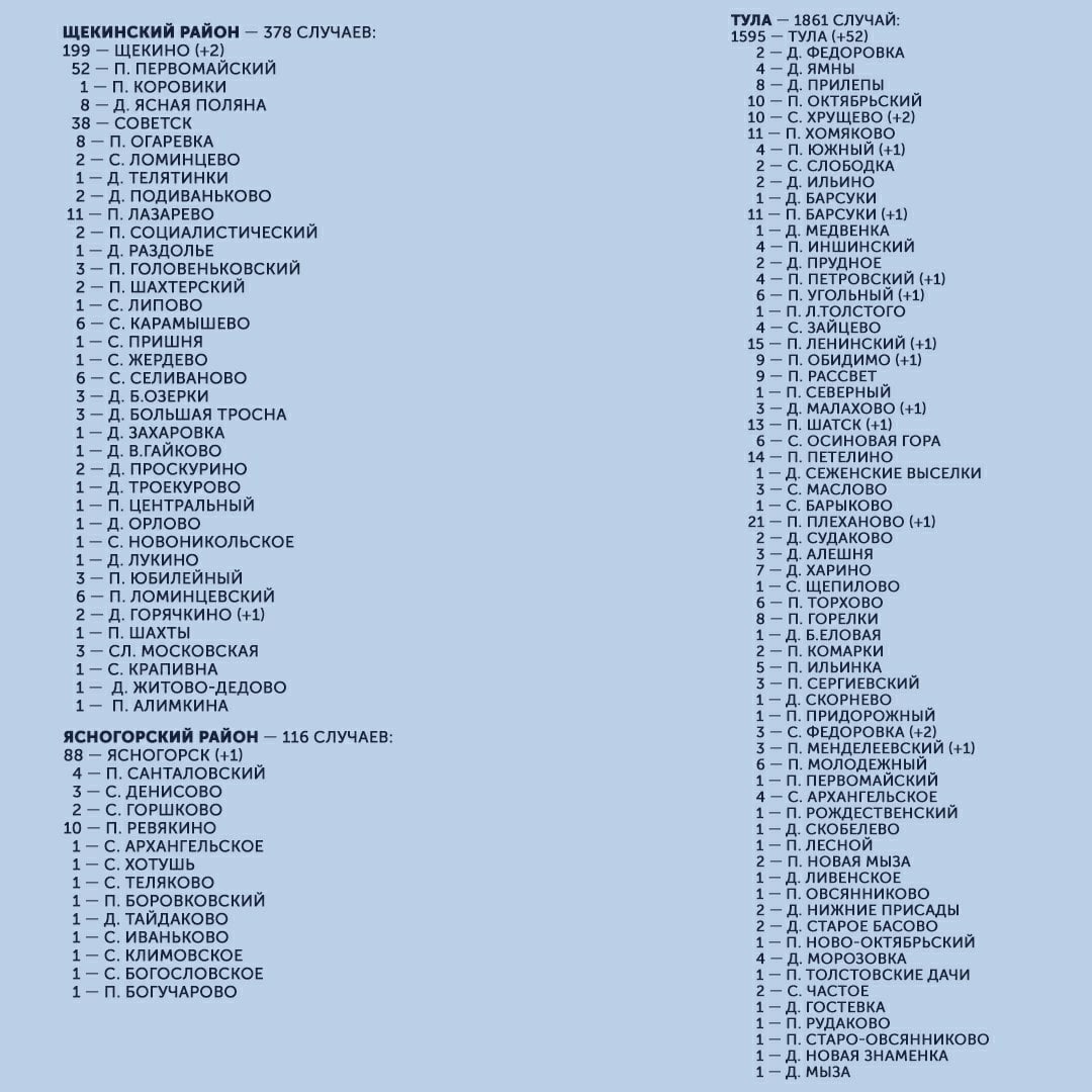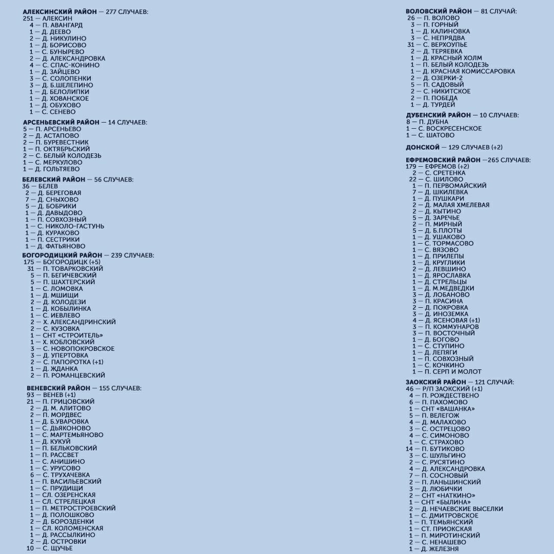 Публикуем подробную карту распространения COVID-19 в Тульской области:
