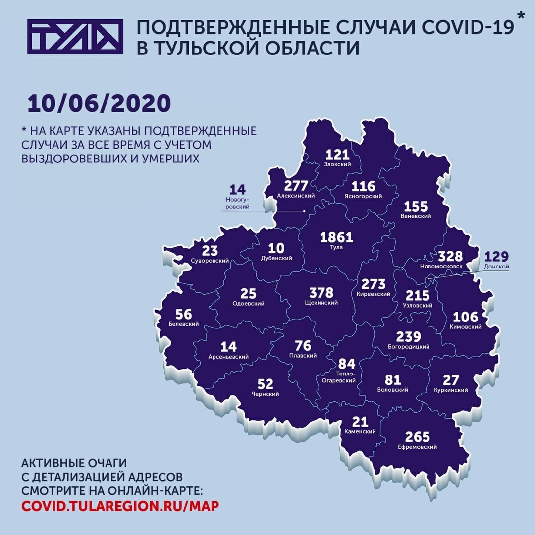 Коронавирус Тульской области: карта распространения на 10 июня