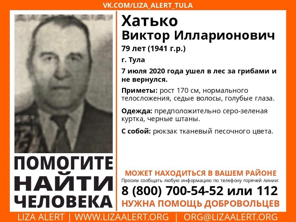 В Тульской области ищут пропавшего 79-летнего пенсионера. Об этом сообщает отряд "Лиза Алерт".