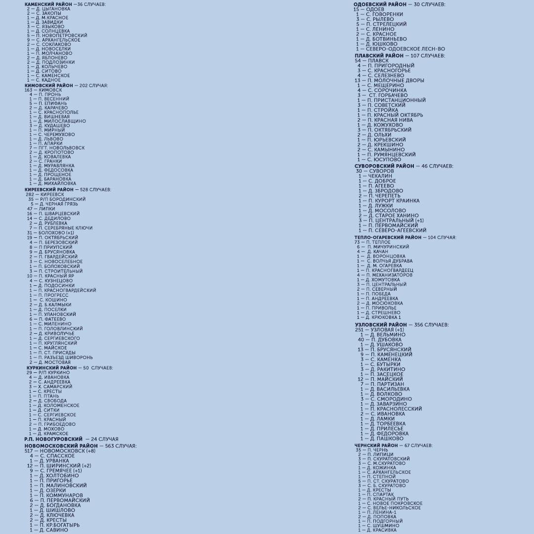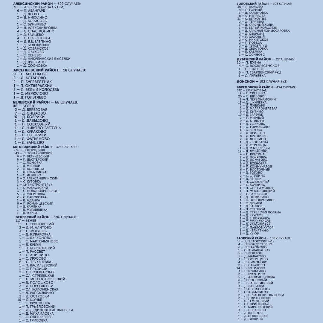 Публикуем подробную карту распространения коронавируса в Тульской области: