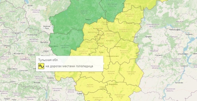 В Тульской области на двое суток установился желтый уровень погодной опасности