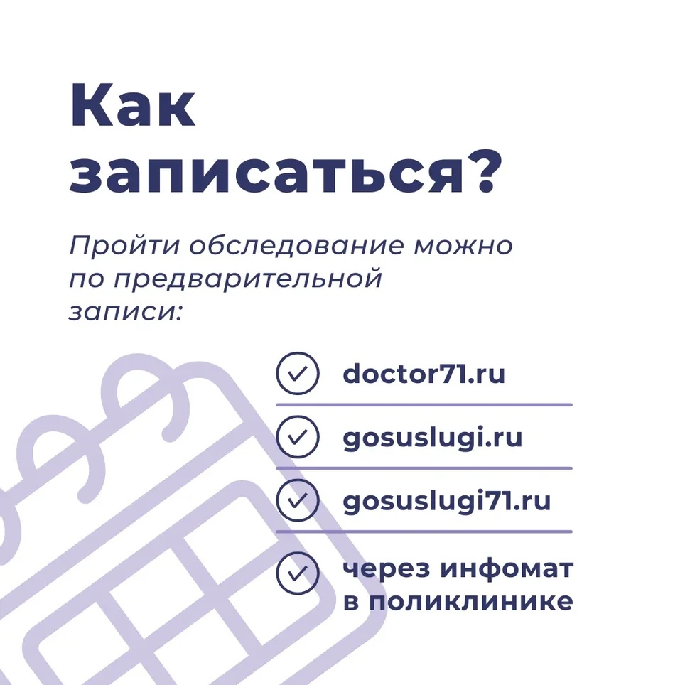 Пройти бесплатное обследование можно по предварительной записи на портале и сайте Госуслуг.